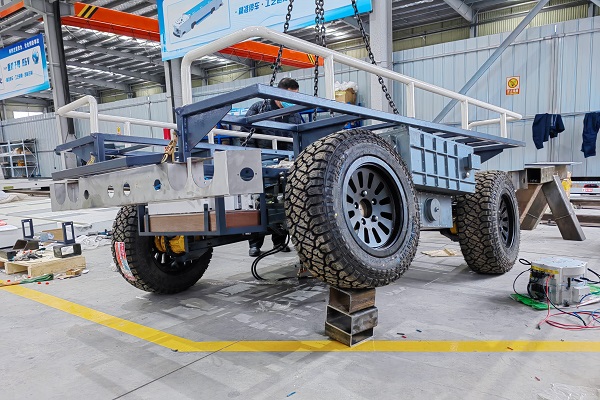 該車型整車和單邊均可跨越300毫米以上高度障礙,預(yù)期實(shí)現(xiàn)遠(yuǎn)程遙控、自主行駛、智能跟隨、一鍵返航等功能,能夠滿足礦井復(fù)雜工況下的物料運(yùn)輸需求,可應(yīng)用于煤礦輔運(yùn)、巡檢和搶險(xiǎn)救援等工作,彌補(bǔ)單工種機(jī)器人功能單一的缺陷,同時(shí)有效解決井下最后一公里散料運(yùn)輸難題,對(duì)智能煤礦“減員、增安、提效”具有重要意義。